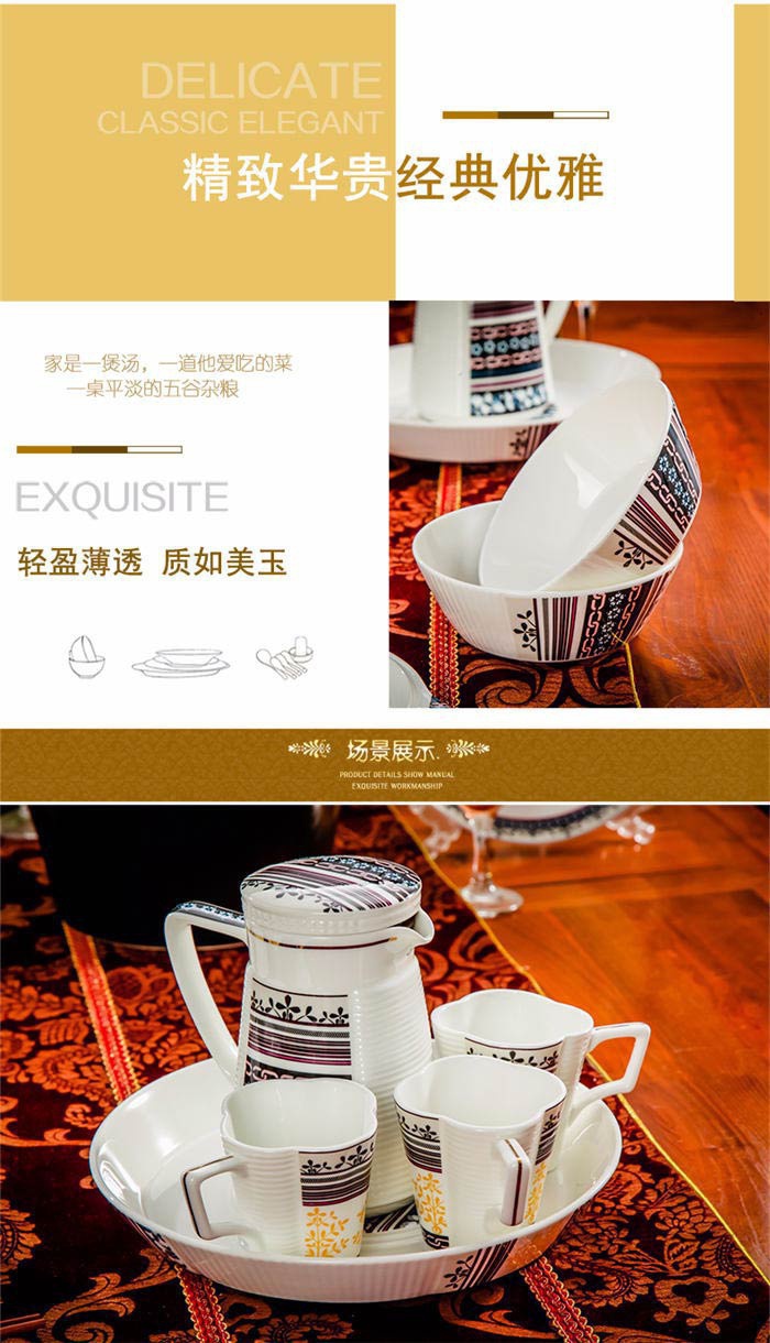 72頭傳奇餐具,餐具60頭 ,一個(gè)湯煲,一個(gè)魚(yú)盤,一個(gè)十寸圓盤,一個(gè)牙簽筒,一個(gè)花籃,一個(gè)大飯勺,兩個(gè)調(diào)料壺,兩個(gè)蓋碗,四個(gè)碗,十個(gè)4.5寸飯碗,十個(gè)4寸湯碗,十個(gè)8寸盤,十個(gè)調(diào)羹,十個(gè)筷子架,