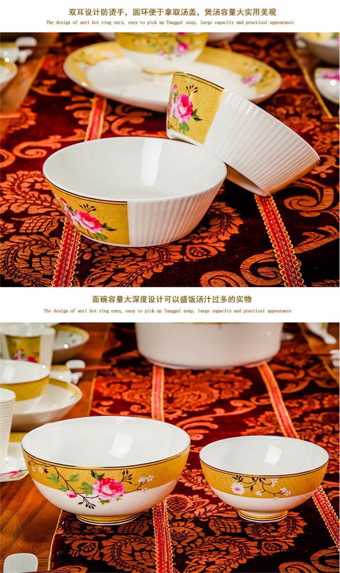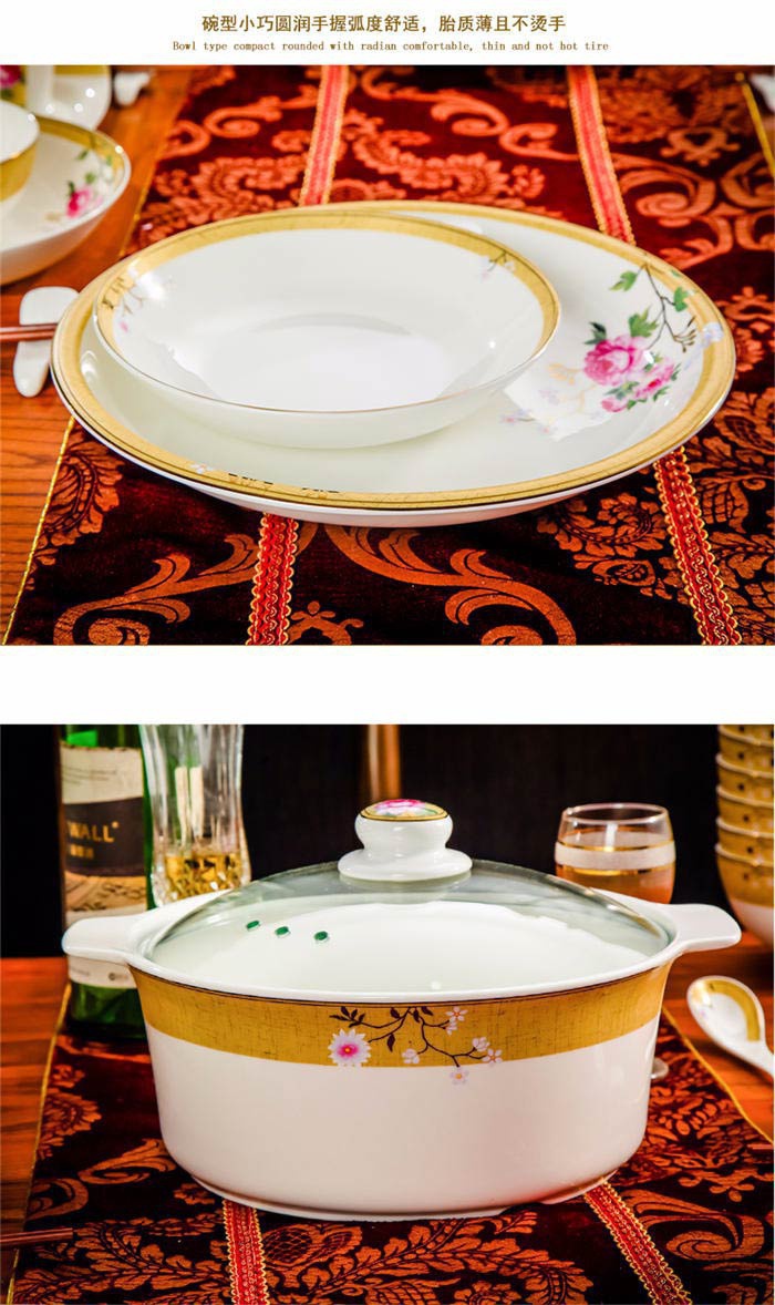 72頭花木蘭餐具,餐具60頭 ,一個(gè)湯煲,一個(gè)魚盤,一個(gè)十寸圓盤,一個(gè)牙簽筒,一個(gè)花籃,一個(gè)大飯勺,兩個(gè)調(diào)料壺,兩個(gè)蓋碗,四個(gè)碗,十個(gè)4.5寸飯碗,十個(gè)4寸湯碗,十個(gè)8寸盤,十個(gè)調(diào)羹,十個(gè)筷子架,