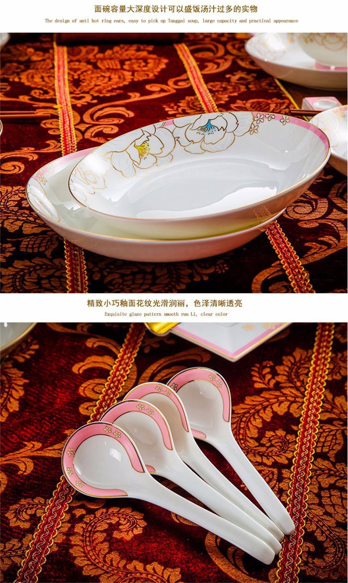 64頭凡爾賽玫瑰,一個湯煲,一個魚盤,一個十寸圓盤,一個飯勺,一個煙灰缸,兩個胡椒瓶,四個面碗,一個雙層水果盤,一個美鵝,十個4.5寸飯碗,十個五寸骨碟,十個八寸盤,十個調(diào)羹,十個筷子架。