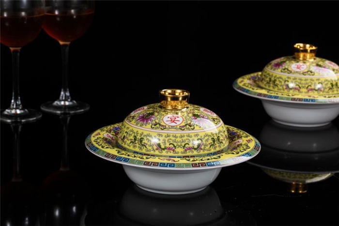十個碗,7寸骨盤十塊,盤子十塊,小勺十個,筷子架十個,面碗四個,魚盤一個,大圓盤一塊,湯煲一個,合和器2套四塊,燉盅2套四個,果盤1套二個,大飯勺一個。