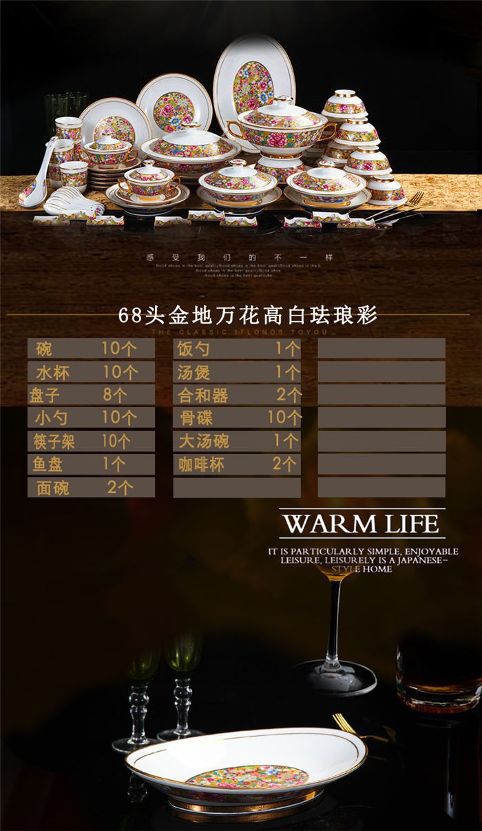 碗十個(gè),水杯十個(gè),盤(pán)子八個(gè),小勺十個(gè),筷子架十個(gè),魚(yú)盤(pán)一個(gè),面碗二個(gè),飯勺一個(gè),湯煲一個(gè),和合器二個(gè),骨碟十個(gè),大湯碗一個(gè),咖啡杯二個(gè)。